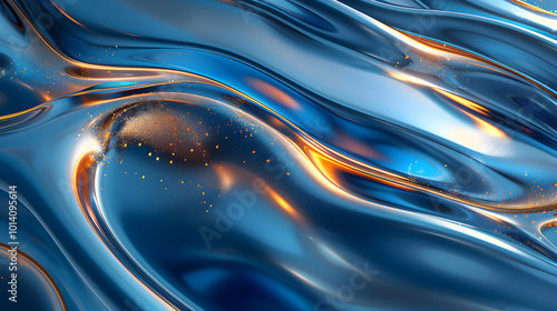 © Oleksandra, Obraz premium A closeup of a liquid blue and orange abstract background with a fluid pattern resembling water ripples. The colors blend into azure, purple, and electric blue, creating a mesmerizing effect