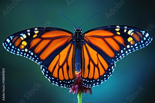 Obraz premium A closeup of a monarch butterfly feeding on nectar, with delicate patterns...