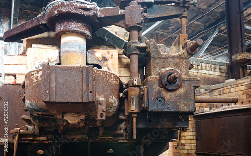 © gjp311, Naklejka premium A closeup of an industrial grunge scene. Paint peeling of this m