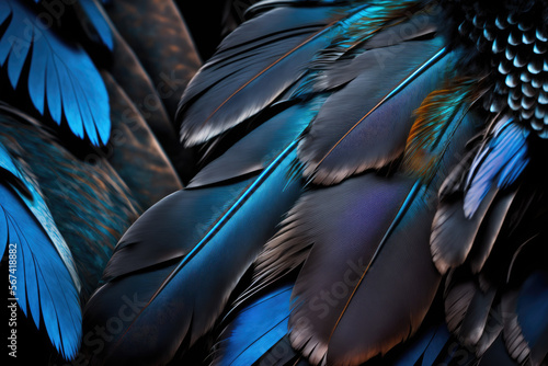 Fototapeta premium a closeup of black - blue feathers. Generative AI