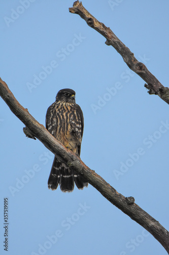 © haseg77, Obraz premium A closeup of Merlin perching on the branch. Vancouver BC Canada