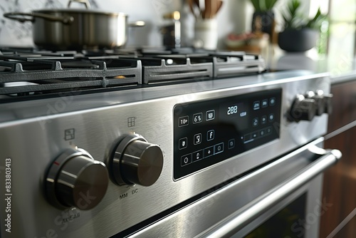 © Graph Squad, Obraz premium A closeup of the control panel on an oven, showing buttons and digital display with numbers