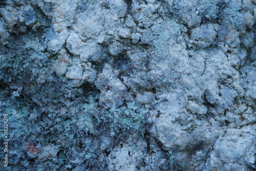 © Risto, Fototapeta premium A closeup photo of bedrock, coloured light blue by quartz and light green by lichens