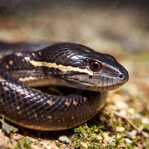 Fototapeta premium a closeup shot of a black and white snake in the forest