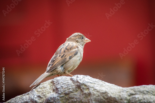 © Ravyn, Fototapeta premium A closeup shot of a cute sparrow sitting on a stone statue