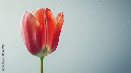 © jinna, Fototapeta premium A closeup shot of a red tulip blossom against a white