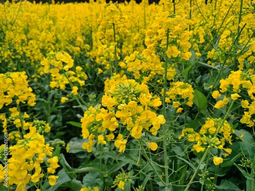 © scarlett, Fototapeta premium A closeup shot of a yellow Rapeseed flower on a blurred background.