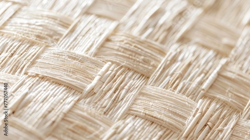 Obraz premium A closeup shot of the wallpaper in the third image reveals the intricate weaving pattern of jute fibers giving it a modern and stylish look. The subtle sheen of the natural fibers .