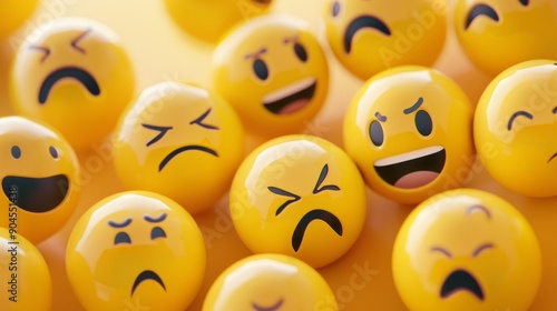 Fototapeta premium A closeup shot of yellow emoii faces with different emotions