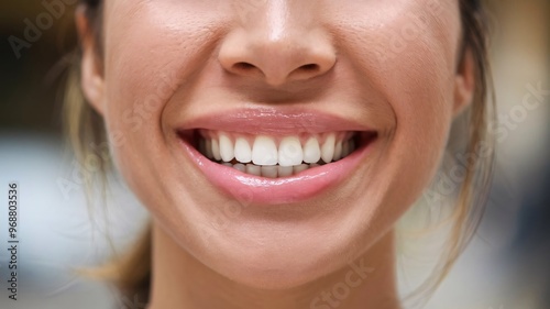 Obraz premium A closeup smile of a mid 30's age female, Absolutely nice teeth and smile of...