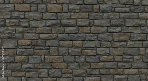 © Adventuria, Obraz premium A closeup view of a gray and tan stone brick wall