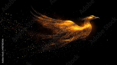 Fototapeta premium A cloud of glowing particles shaped like an abstract phoenix in flight