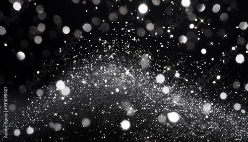 © Fay Melronna , Obraz premium A cloud of tiny particles and dust explodes against a dark background, creating an abstract, shimmering effect in the darkness.