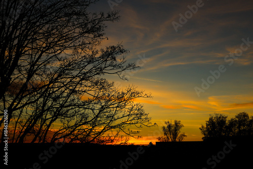© Cavan, Obraz premium A cloudy sunset behind a tree