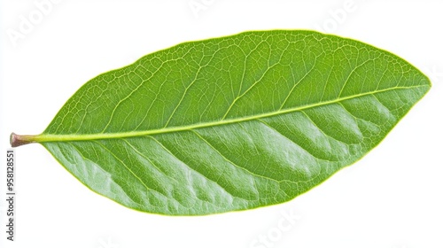 Obraz premium A clove tree leaf, elongated and oval with a smooth margin and dark green color