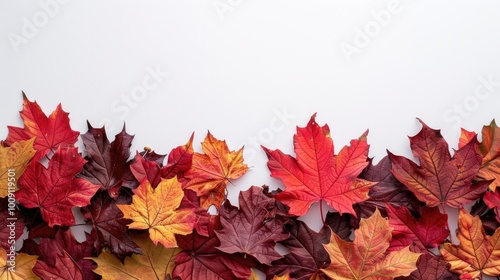 Fototapeta premium A cluster of autumnal leaves on a clean white background