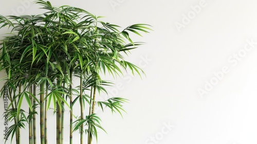 Fototapeta premium A cluster of bamboo plants against a plain wall, creating a serene indoor...