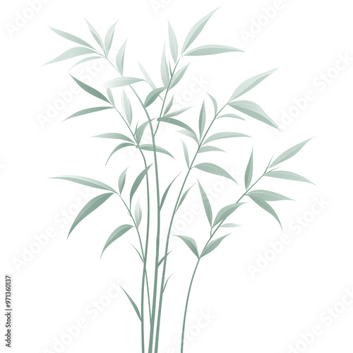 Naklejka premium A cluster of bamboo stalks with lush green leaves against a black background.