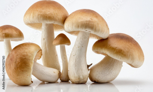 © Vii, Fototapeta premium A cluster of diverse fungi species arranged on a clean, flat background