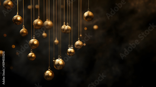 © Margarete, Obraz premium A cluster of golden ornaments hanging against a dark moody background.