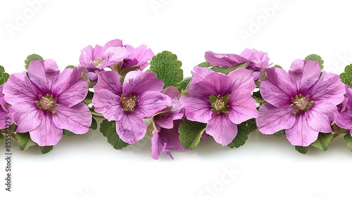 © Liel, Fototapeta premium A cluster of lilac blooms arranged on a white table alongside a verdant foliage plant