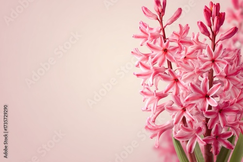 Naklejka premium A cluster of vibrant pink hyacinths in soft focus against a pale, pastel...