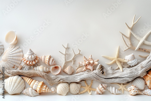 © Милана, Obraz premium A coastal themed decor mockup with shells