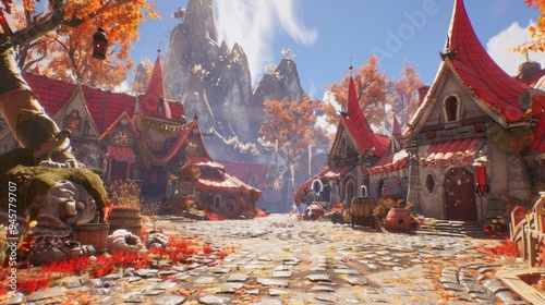© Palette_Dreams, Obraz premium A cobblestone street in a quaint village