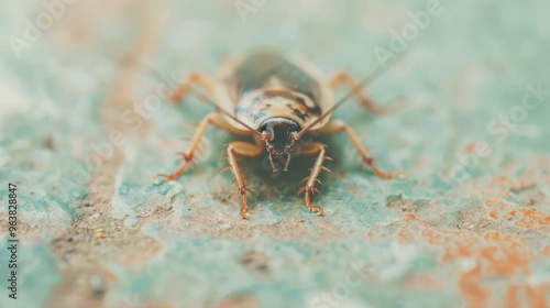 Fototapeta premium A cockroach crawls across a tiled floor, revealing its distinctive features...
