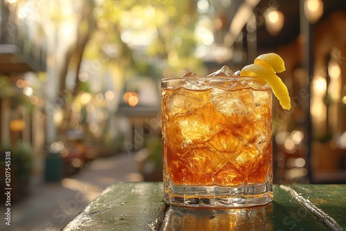 © Антон Сальников, Obraz premium A cocktail sits on an outdoor table at a Charleston restaurant