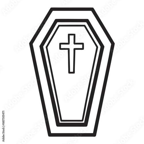 Obraz premium a-coffin-with-cross-in-outline-style--white-backgr.eps