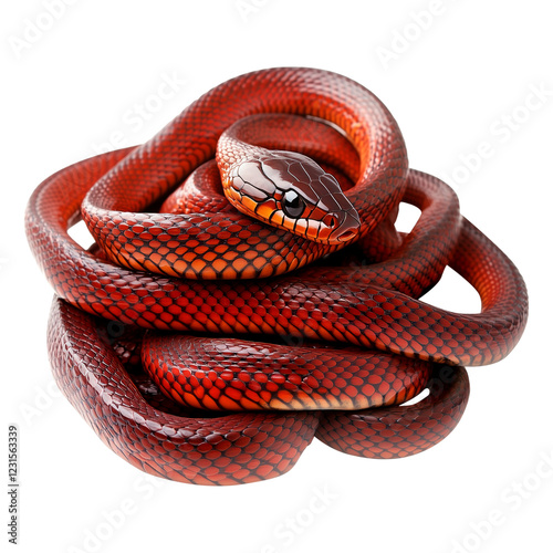 Fototapeta premium A coiled red snake with intricate textures and vibrant scales, isolated on...