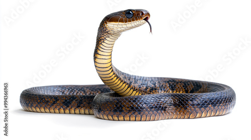 © Sadia, Fototapeta premium A coiled snake displaying its striking pattern and flicking tongue in a natural setting