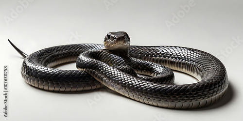 © Riefdeigartz, Obraz premium a coiled snake with various unique patterns and types, lying on a white background. Realistic view. created with generative AI