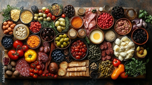 Fototapeta premium a Collage of various food products, arranged artistically to highlight...