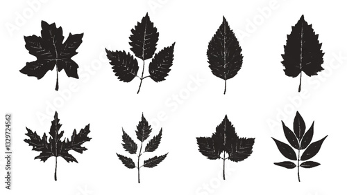 © Song Long, Fototapeta premium A collection black silhouettes of different types of leaves. Black different tree leaves isolated on white background.