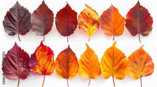 © Sweettymojidesign, Fototapeta premium A collection of autumn leaves in various stages of changing color.