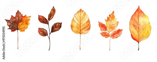 Fototapeta premium A collection of beautifully illustrated autumn leaves in warm colors, perfect...