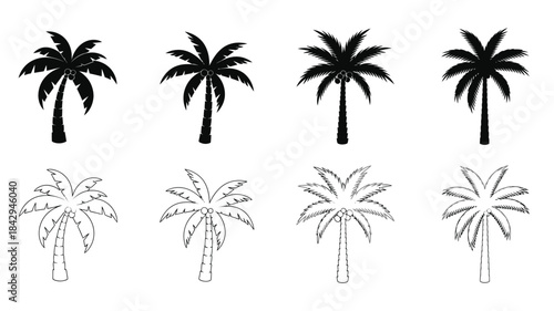 Obraz premium A collection of black and white palm tree illustrations in varying styles