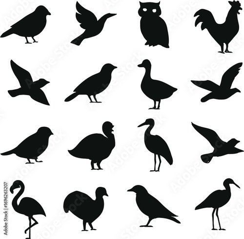© Maheen, Fototapeta premium A collection of black vector silhouettes of different kinds of flying birds