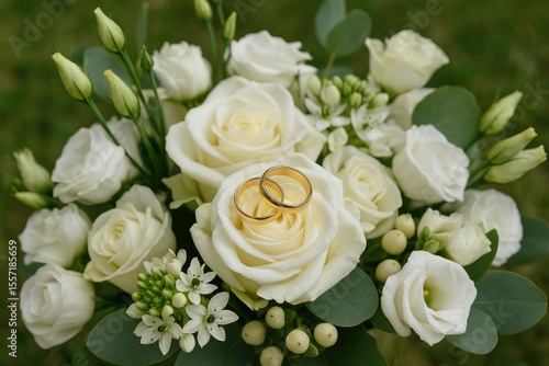 © VirtualVista, Obraz premium A collection of blossoms paired with wedding bands