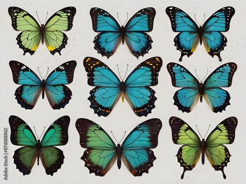 © Muzammil, Obraz premium a collection of butterflies with different colors and shapes set of beautiful blue green yellow
