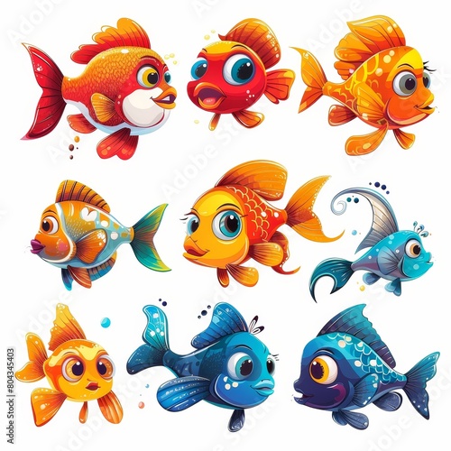 Naklejka premium A collection of cartoon fish with different colors and expressions