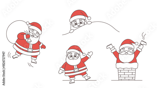 © AHMAD KHOIRI, Obraz premium A collection of cartoon Santa Claus illustrations in various poses, all in red and white.