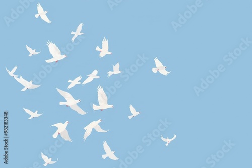 © ArtSpree, Fototapeta premium A collection of cartoon-style blue birds showcasing various poses and expressions.. Beautiful simple AI generated image