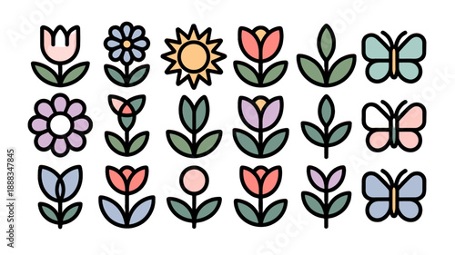 © Marc, Fototapeta premium A collection of charming and colorful floral illustrations with a playful style.