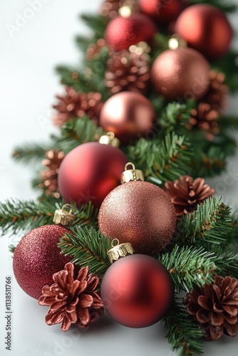 © Fotograf, Fototapeta premium A collection of Christmas decorations on a table
