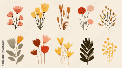 Fototapeta premium A collection of colorful flowers in various sizes and shapes. The flowers are...