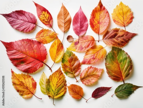 © Suplim, Obraz premium A collection of colorful leaves on a white background