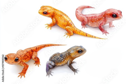 Obraz premium A collection of colorful, realistic-looking gecko-like creatures on a white...